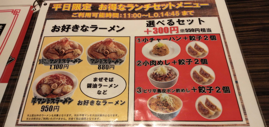 看板メニューはマンモスラーメンですが、醬油ラーメンもあるので、ガッツリ系が苦手な人にはそちらをお勧めします。