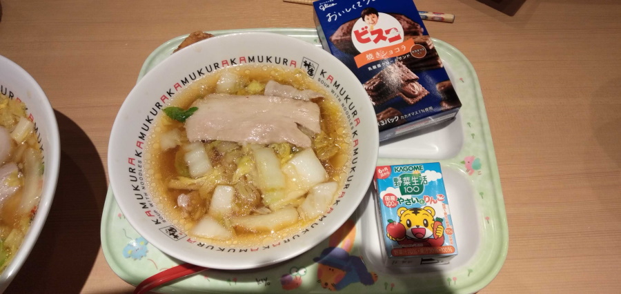 ちなみに飲み物はフルーツ野菜ジュース、お菓子はビスコでした。