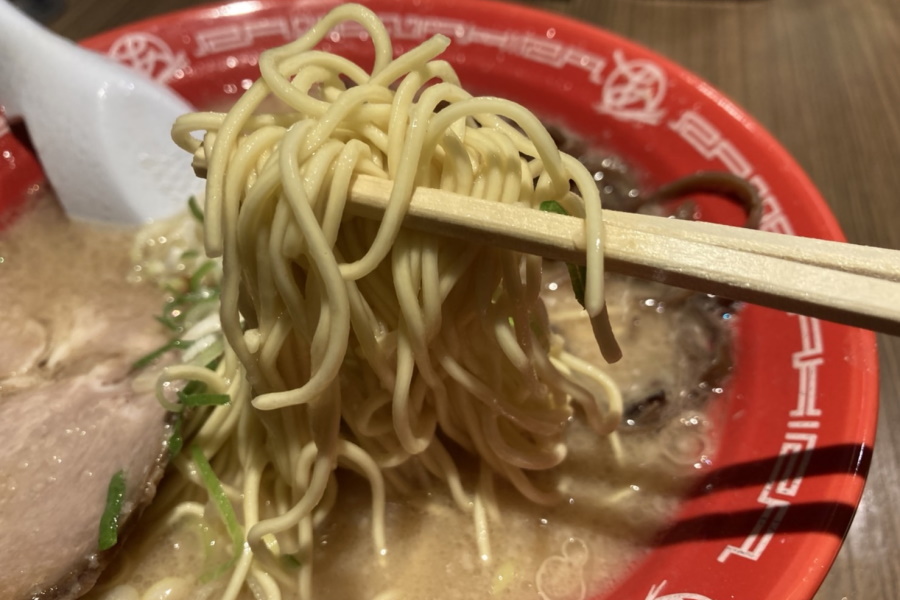 やっぱり豚骨ラーメンは「麺硬め」に限りますが、この麺は小麦粉の香りがいい感じで、美味しい細麺だと思います。