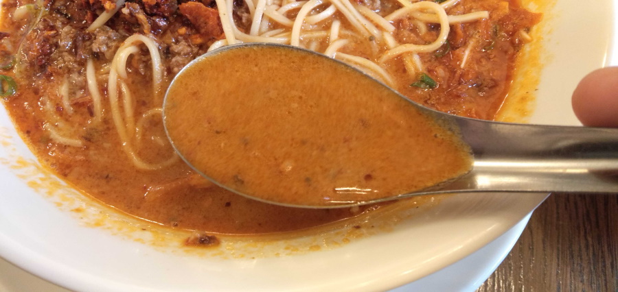 担々麺は山椒(花椒)が効いているので、食べ進めるとメチャクチャ痺れます…(d゚ω゚d)オゥイェー♪