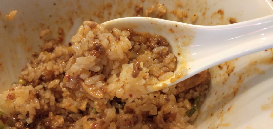 さて、人通り麺を食べ終えたら、丼の底に麻婆麺のタレが残りますよね。