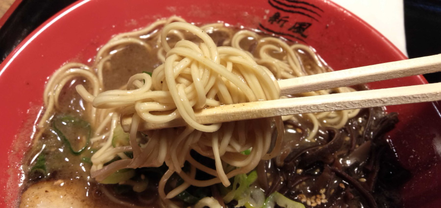 博多新風は2007年のテレビ番組「美味しんぼ塾ラーメン道(日本全県グランプリ)」で準優勝したほどの実力店で、この時に出されたラーメンが看板メニューの「新風豚骨」になります。