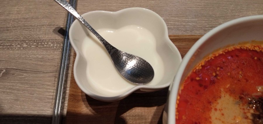 担々麺のスープはクリーミィですが、味が濃いので、やっぱりライスが欲しいですね。