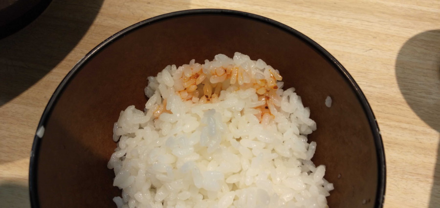 そして、このライスに先程紹介した自家製辣油を少しかけます。