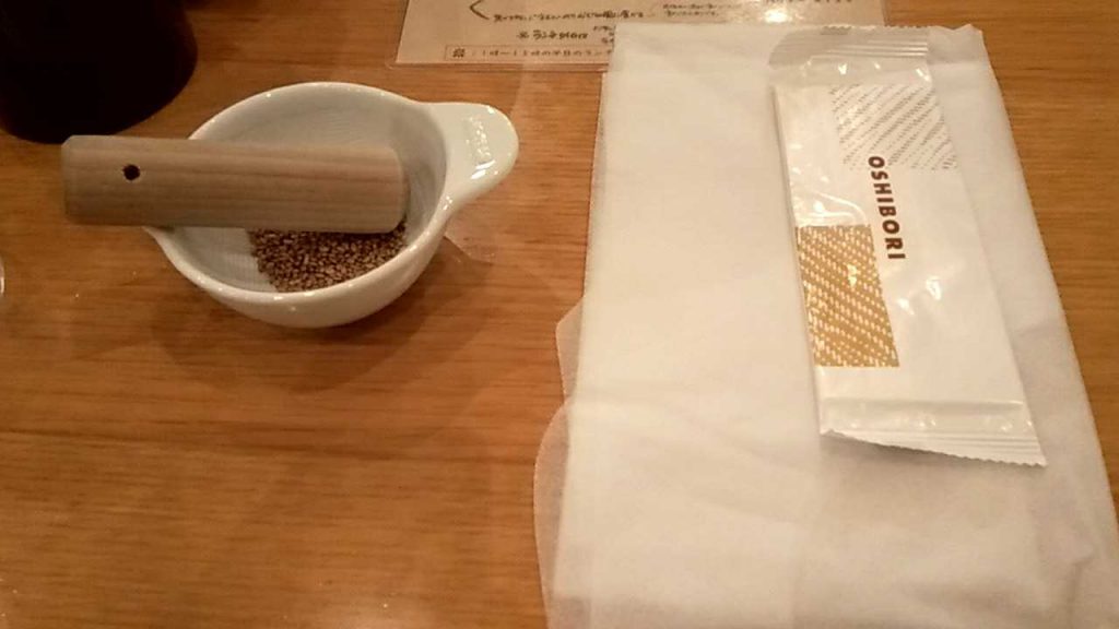 しばらくラーメンが出てくるまで白ごまをすって待ちます。