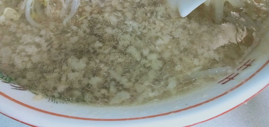 ラーメン二郎は粗みじんの刻みニンニクですが、それよりも細かく刻んでいますね。